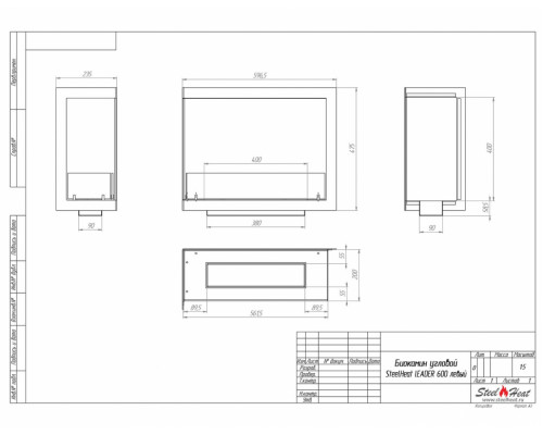 Встраиваемый Биокамин угловой SteelHeat Leader 600 левый предназначен для встраивания в ниши из гипсокартона, кирпича, пеноблоков, бетона или в мебель. При установке биокаминов в мебель необходимо встраиваемую часть очага покрыть теплоизоляционным материалом!