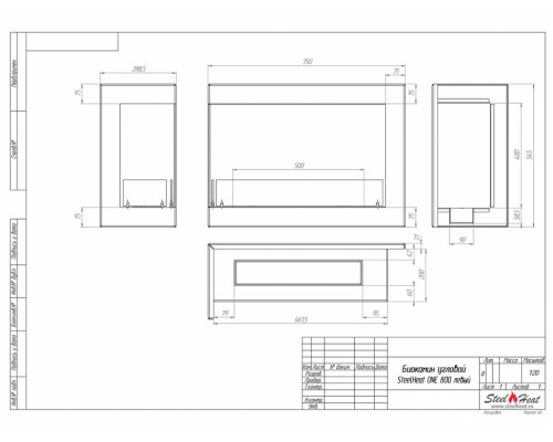 Встраиваемый Биокамин угловой SteelHeat ONE 800 левый предназначен для встраивания в ниши из гипсокартона, кирпича, пеноблоков, бетона или в мебель. При установке биокаминов в мебель необходимо встраиваемую часть очага покрыть теплоизоляционным материалом!